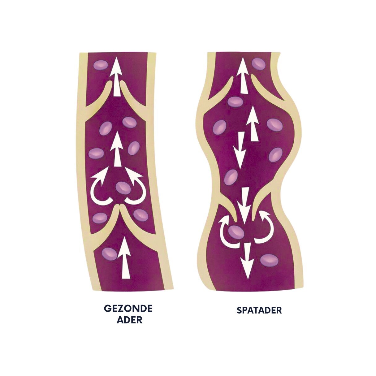 Spataders ontstaan wanneer de kleppen in de aders van de benen niet meer goed functioneren. Daardoor stroomt het bloed niet efficiënt terug naar het hart en hoopt het zich op in de oppervlakkige aders. Deze zetten uit en worden zichtbaar als kronkelende, verdikte aders.